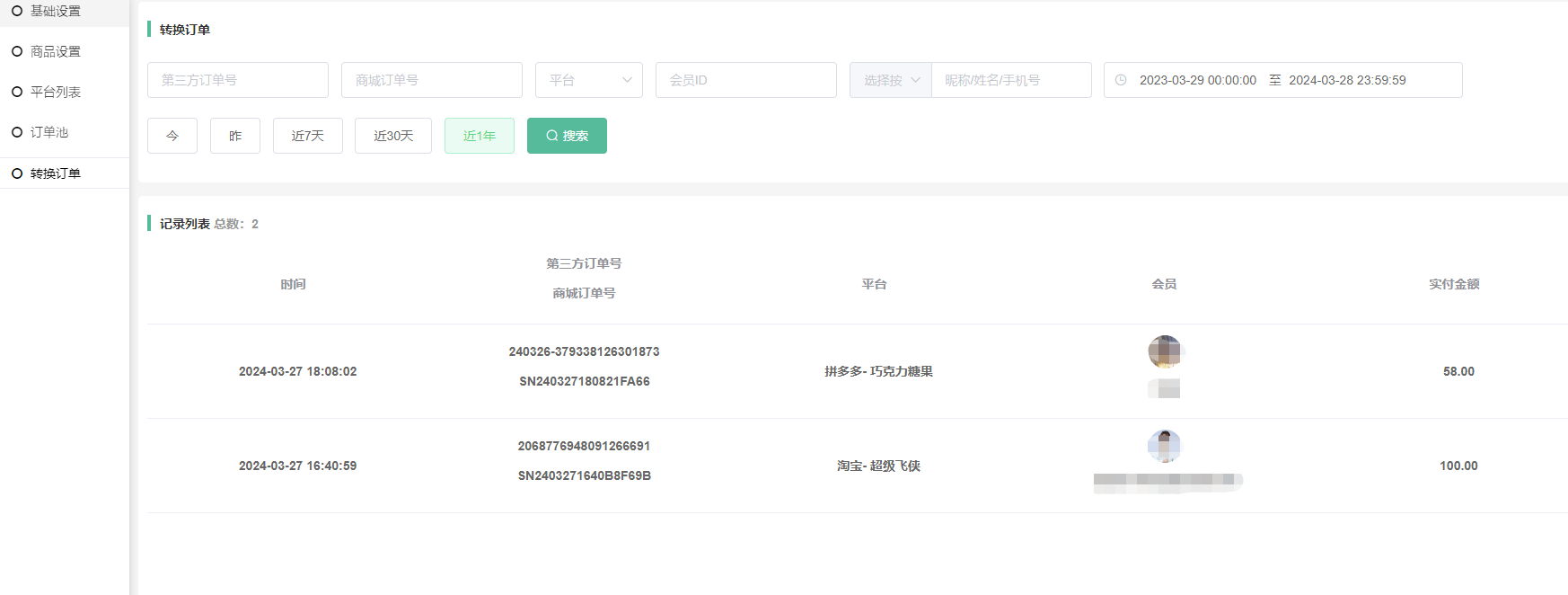 转换订单:可查看已经转换的订单