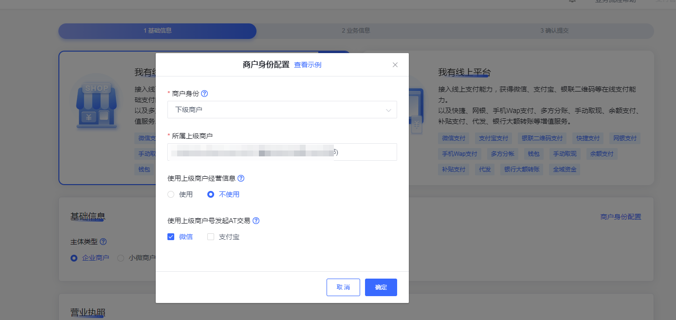 3、经营信息:商户简称、商户经营地区、店铺门头照、店铺内景/工作区域照、店铺收银台/公司前台照