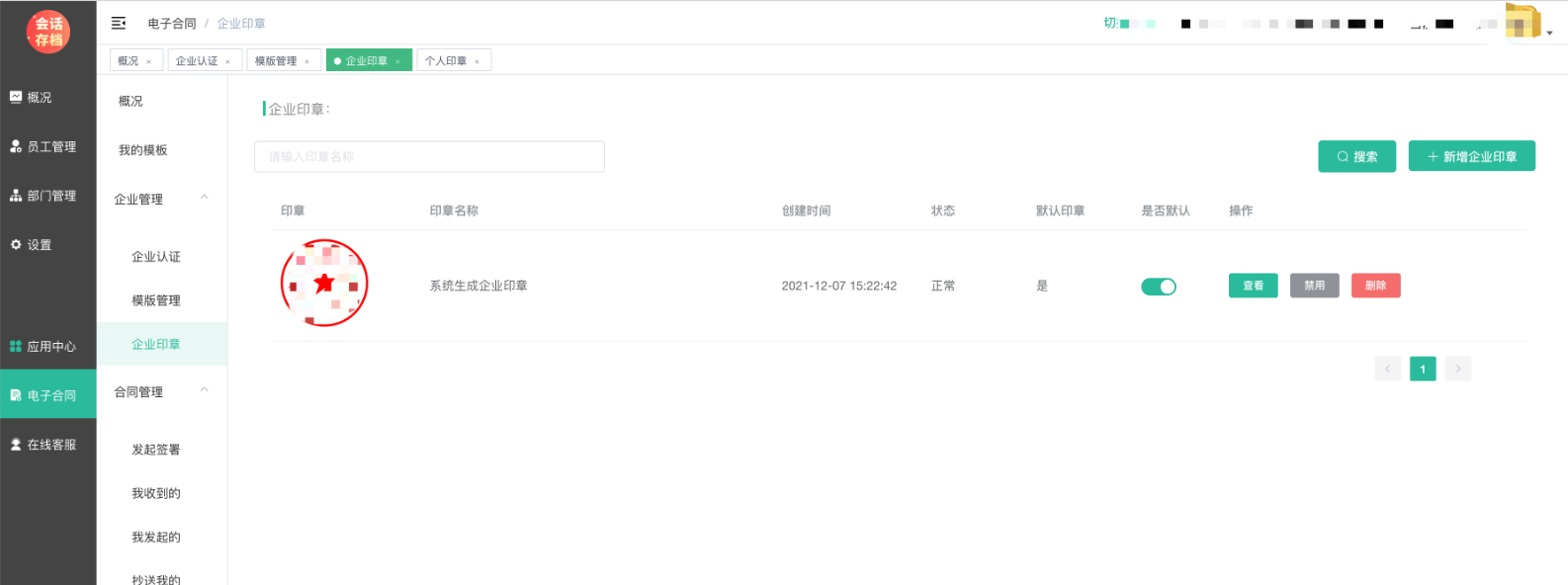 认证通过后,进入电子合同--概述页面,刷新,可以看到个人和企业皆已通过认证