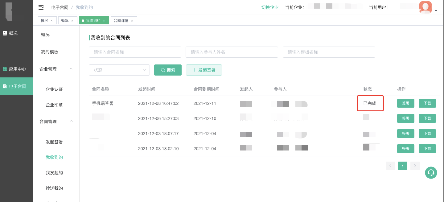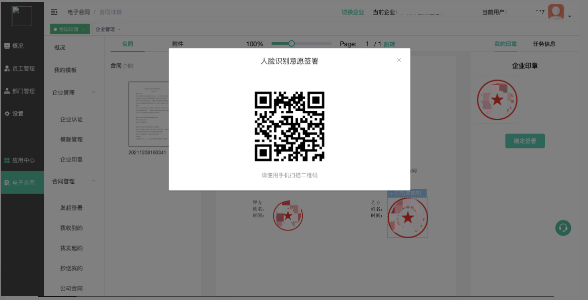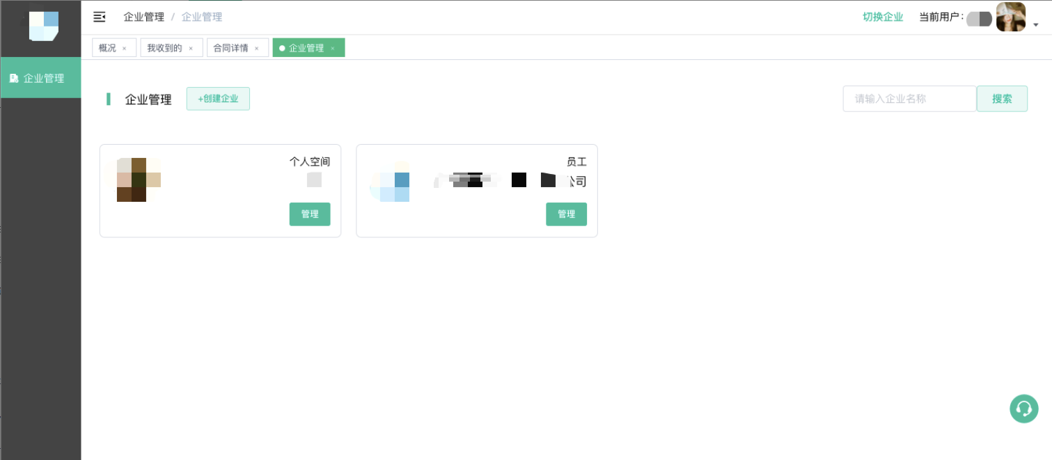 注意:当登录的账户有多企业时,签署合同时要进入合同发起时所填写的空间/企业,如果不确定是哪个,请联系合同发起方确认。