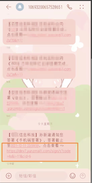 - 发起方签署后,所有签署方都可以接收到一条签署短信,短信中包含签署链接;