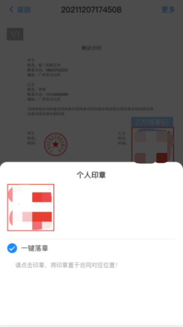 浏览合同内容,确认无误后,将右侧印拖至乙方签署区,然后点击【确定签署】