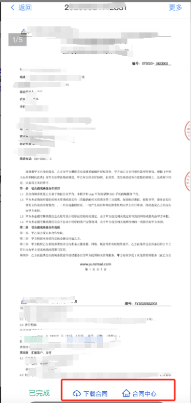 电子合同详情手机端增加下载合同、返回合同中心入口