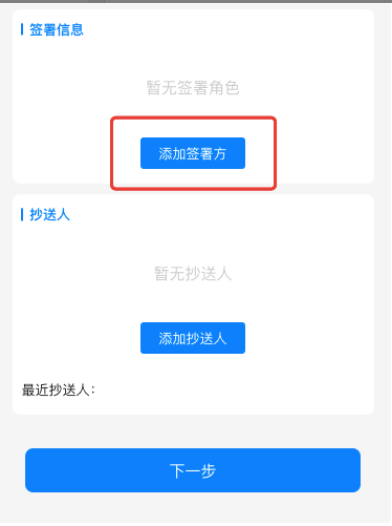 签署方信息都添加完成后,可选择性添加抄送人,然后进入下一步;