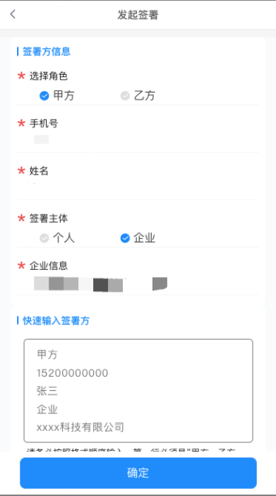 *签署角色的添加除了手动填写,还有智能填充、选择历史签署方两种方式,快速填写签署方信息,操作更简单便捷。