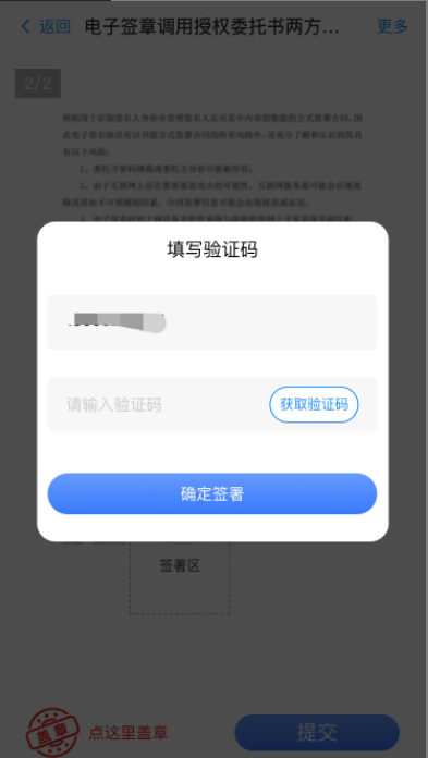 进行意愿认证签署,合同即签署成功,等待对方签署。