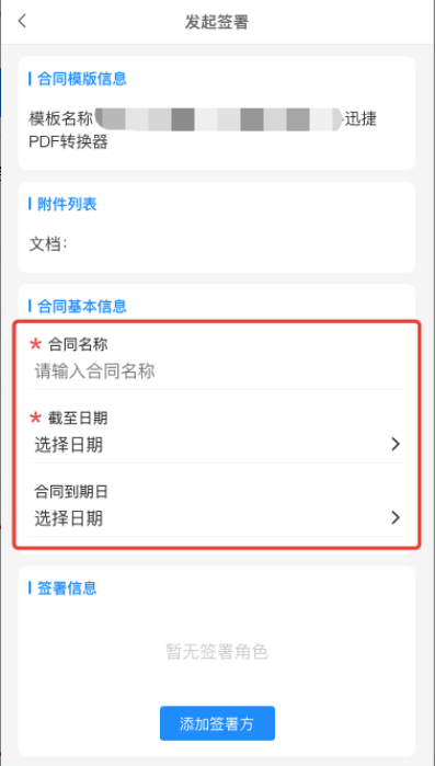 - 截止日期:选择后,签署方只能在截止日期之前进行合同签署,过期后不能再进行签署