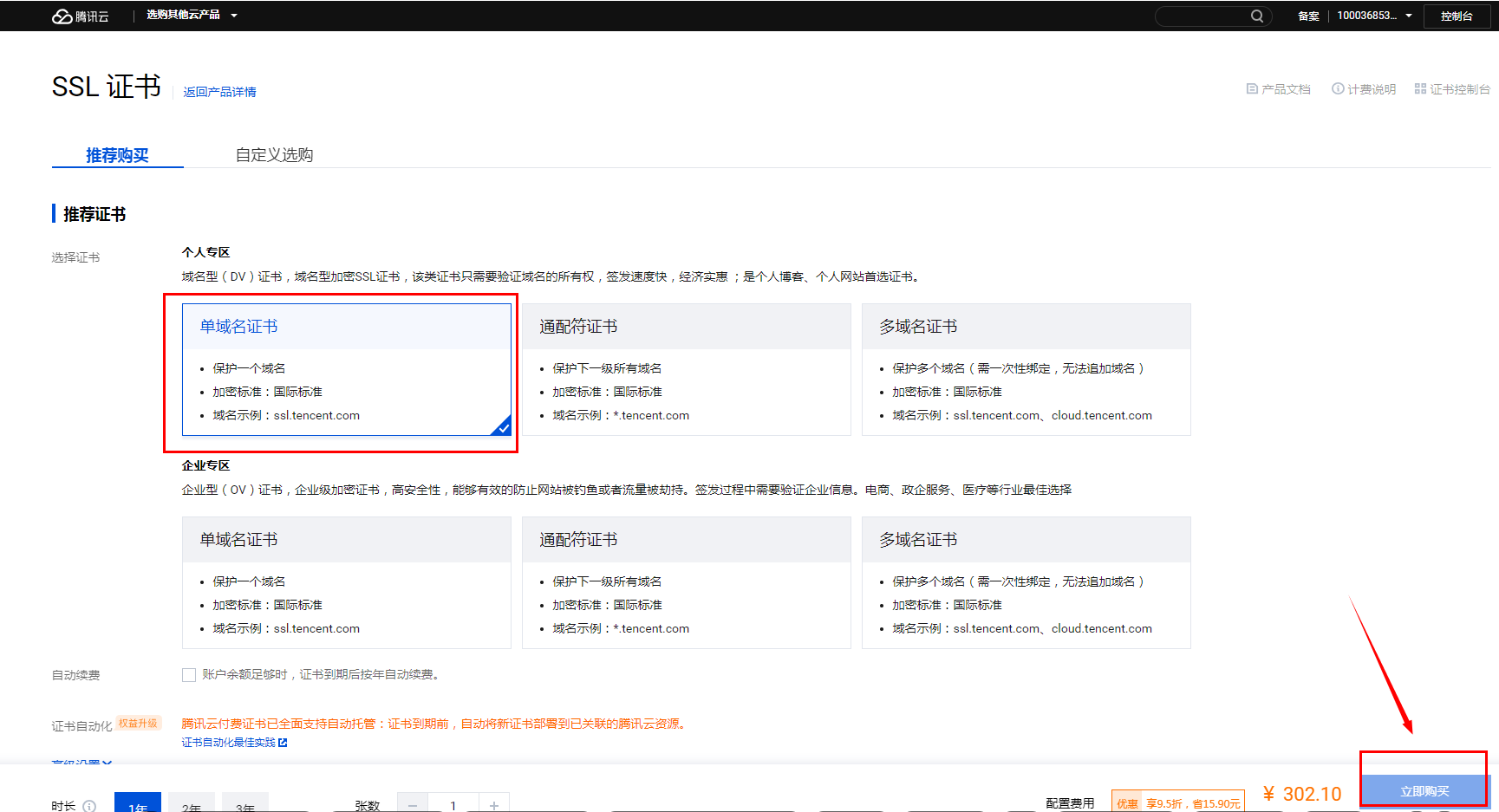 搜索SSL证书,点击购买证书