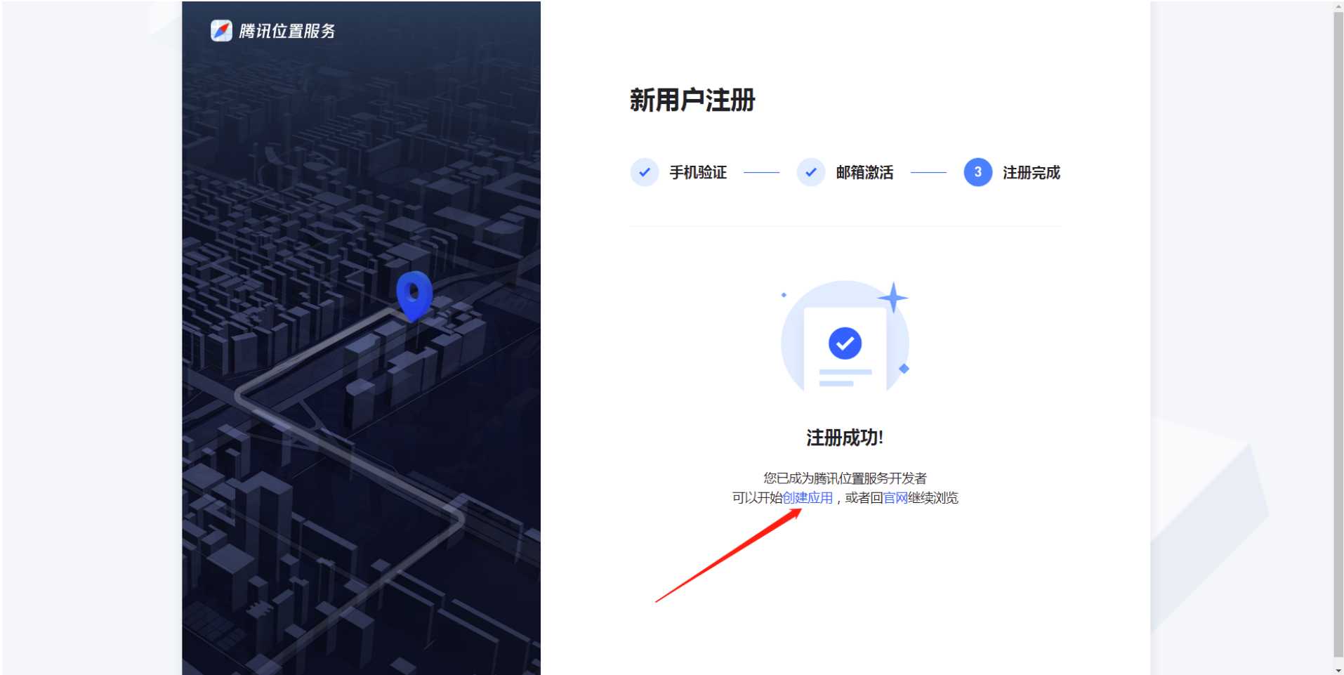 ③ 注册完成,点击创建应用