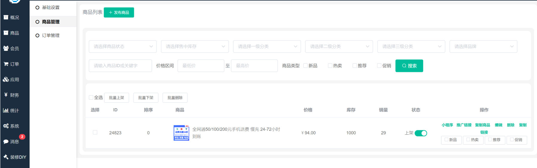 2、发布话费慢充商品