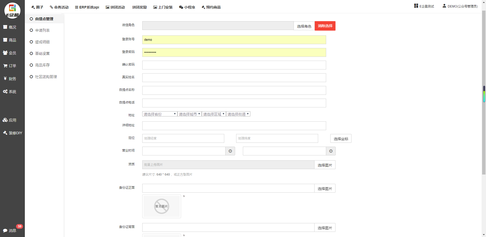 添加自提点-(登录账户跟密码设置好一定要记住)