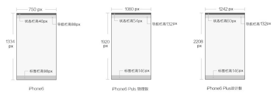 2. 状态栏高度:750*40px、导航栏高度:750*88px、标签栏高度:750*98px