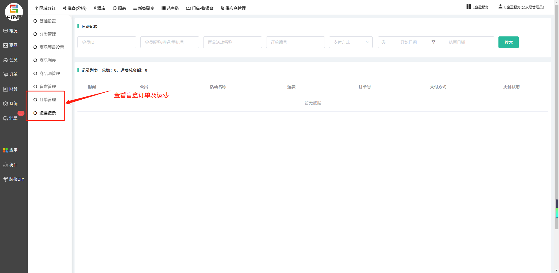 5. 盲盒可设置是否需要运费,设置需要运费,会员开箱后想要中奖商品,则需要额外支付费用;若用户不想要商品,则可兑换为积分/爱心值。运费支付记录前端不显示
