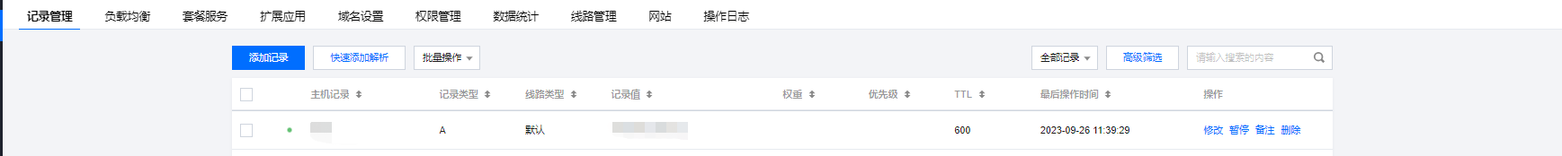 1、登录 DNSPod 管理控制台 快速添加解析。如下图所示: