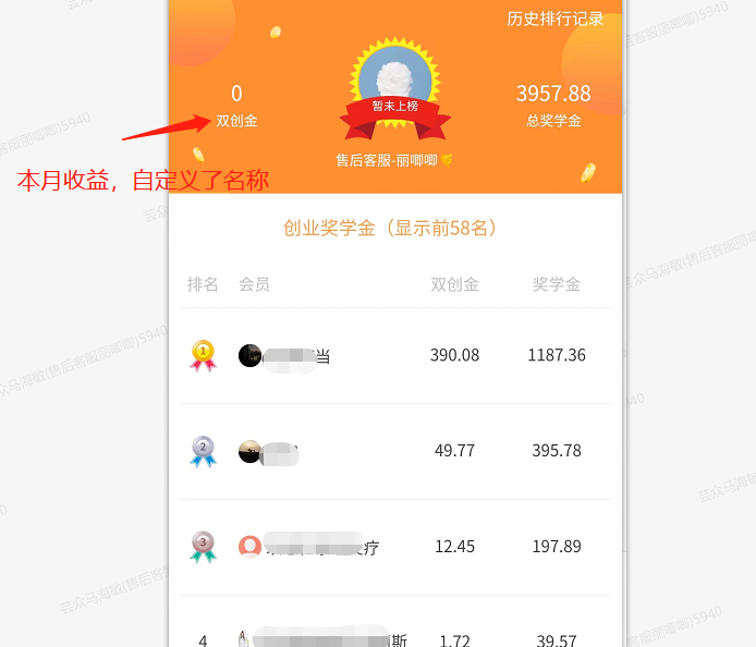 (2)收益排行榜自定义名称