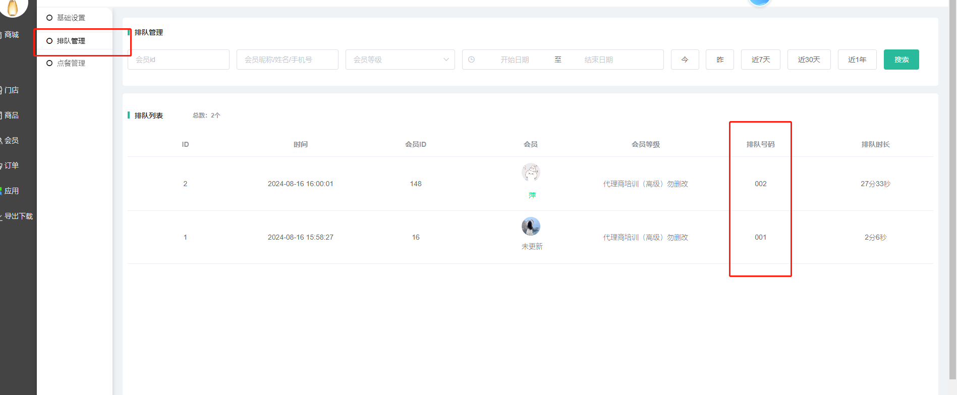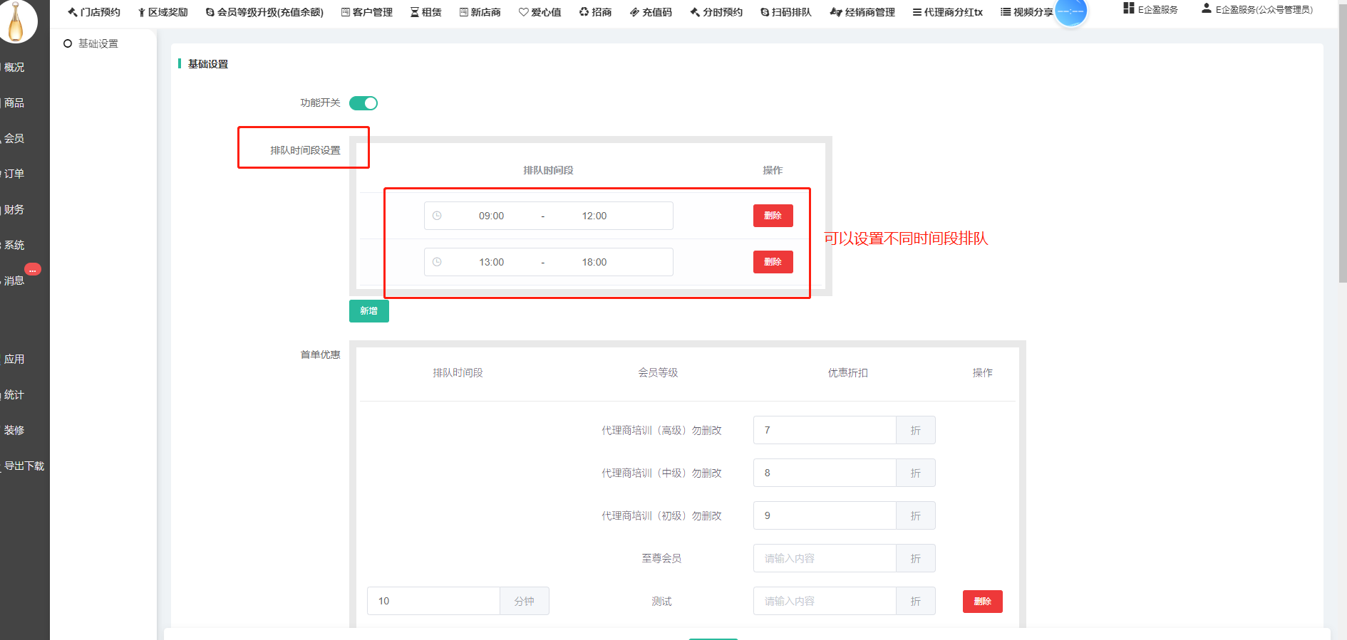 二、商城后台设置排队时间段,首单超时优惠;门店独立后台获取门店排队码,会员扫码排队;排队时间超时在时间段内首次下单可获得超时优惠