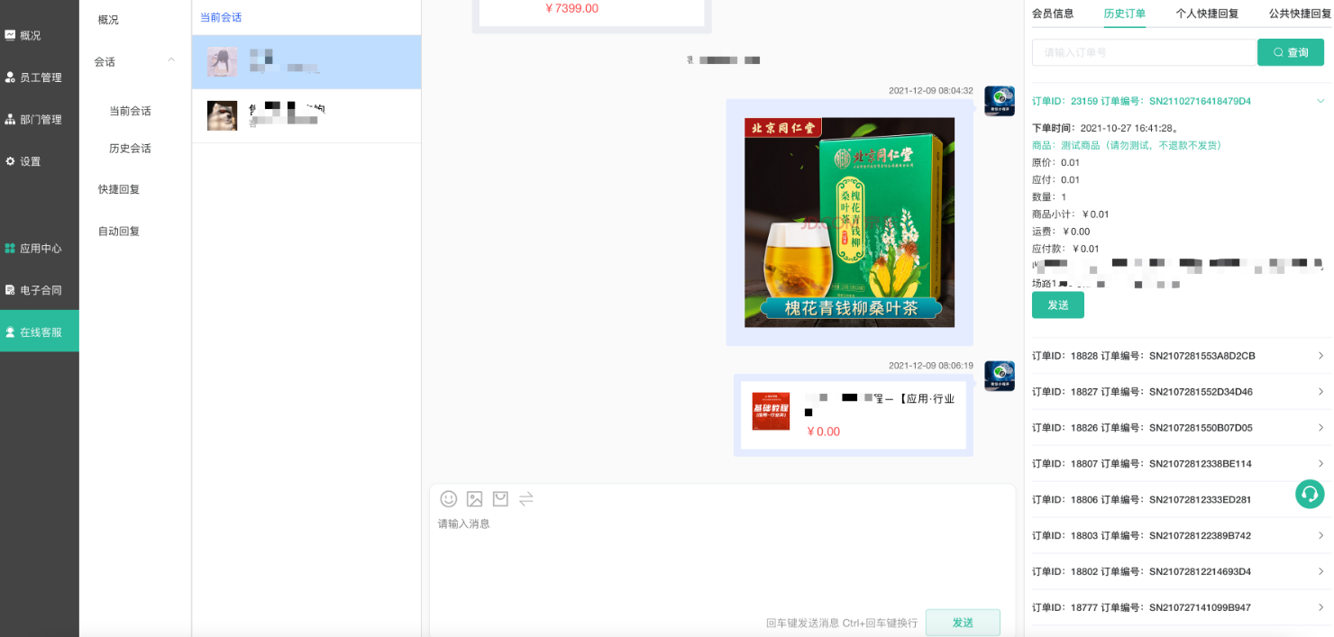 在线客服 客服端是提供给客服人员使用的端口,客服登录后可以进行在线回复、查看历史会话等操作。